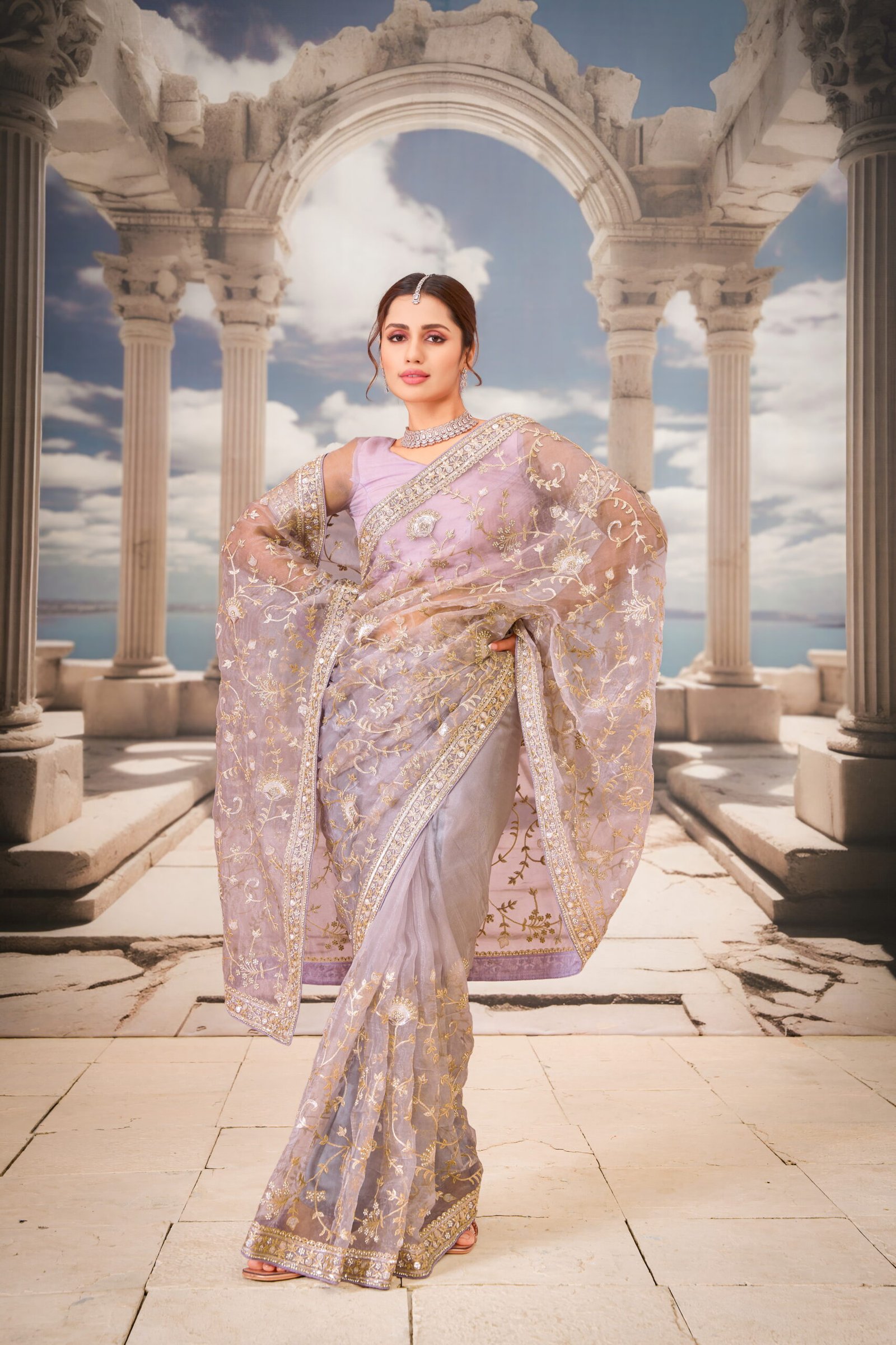 Discover the timeless elegance of this lavender and gold floral saree, featuring exquisite embroidery perfect for weddings, festive occasions, and special events. Crafted from high-quality fabric, this saree combines traditional Indian craftsmanship with modern style. The intricate floral embroidery, highlighted by delicate gold threadwork, adds a touch of royalty to your look. Whether you’re attending a grand wedding, celebrating a festival, or attending a family gathering, this saree ensures you stand out with grace and sophistication. Pair with statement jewelry for a complete look. Ideal for bridesmaids, guests, and brides looking to make a statement. Shop now for the perfect blend of elegance and charm in your saree collection!”