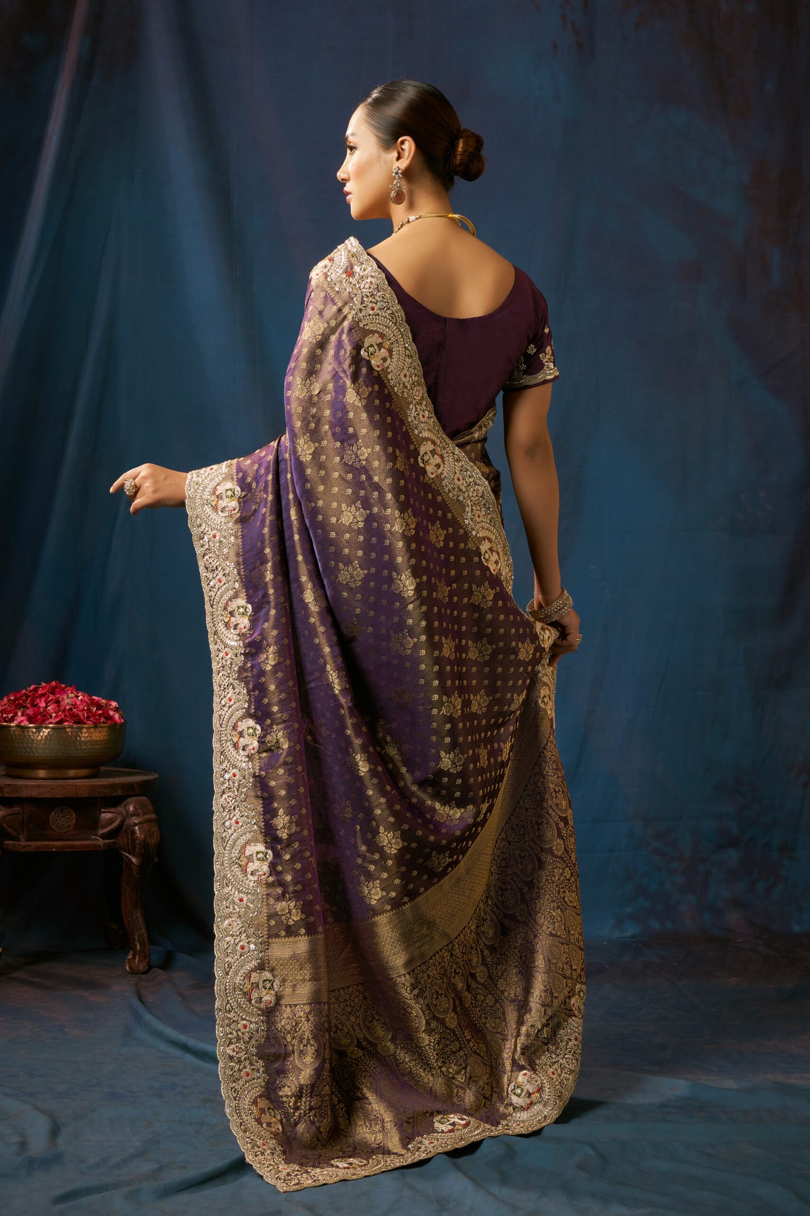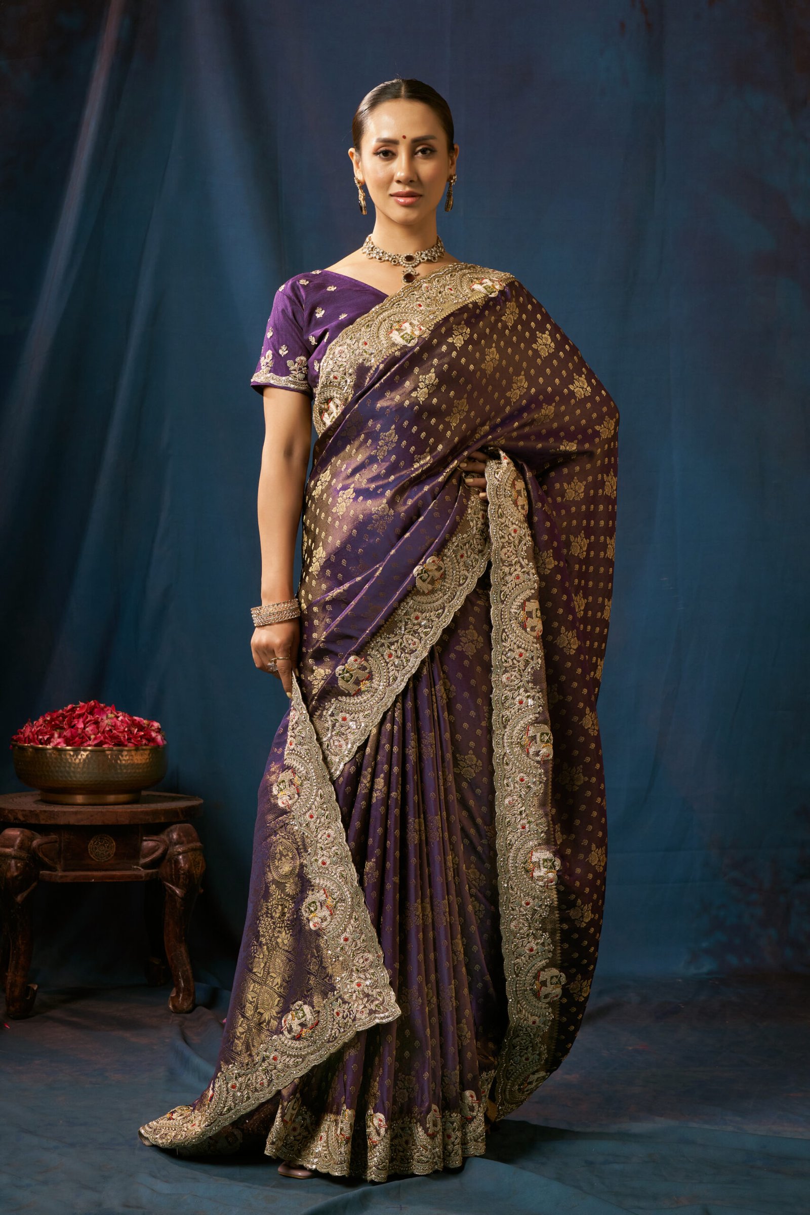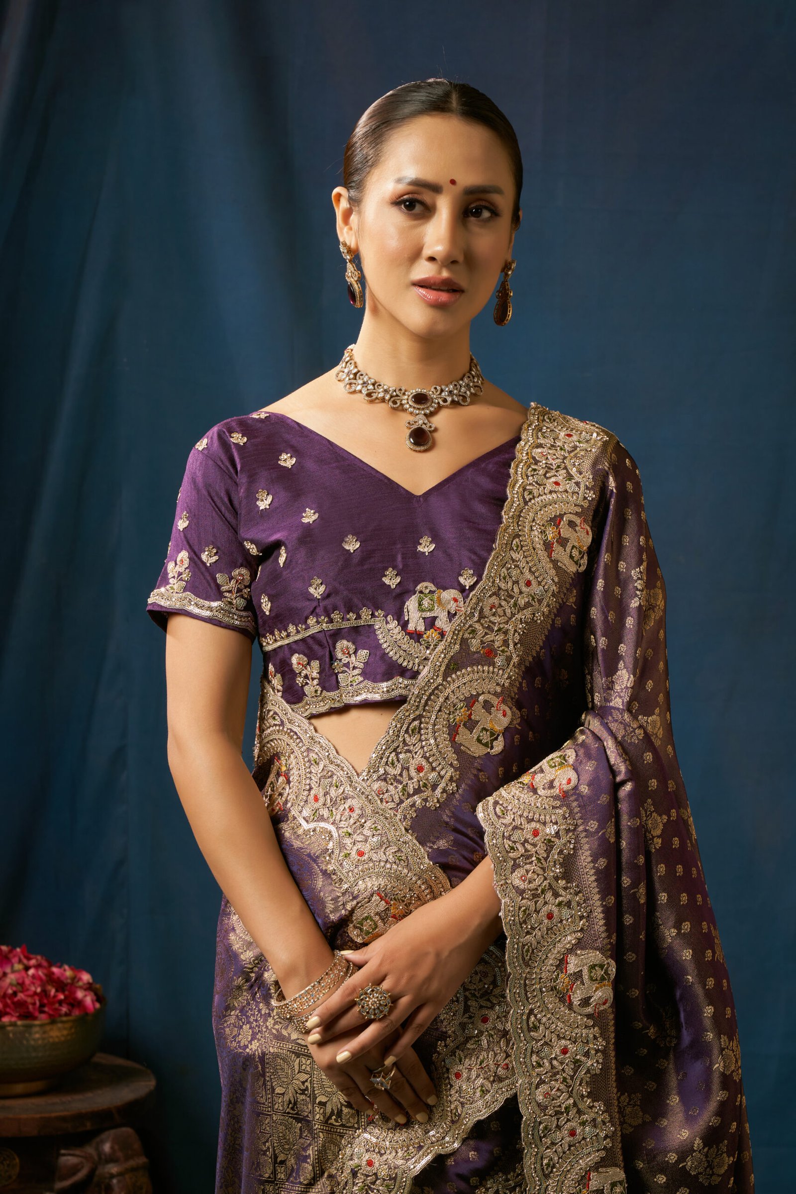 Royal Banarasi Purple Silk Saree with Golden Butta